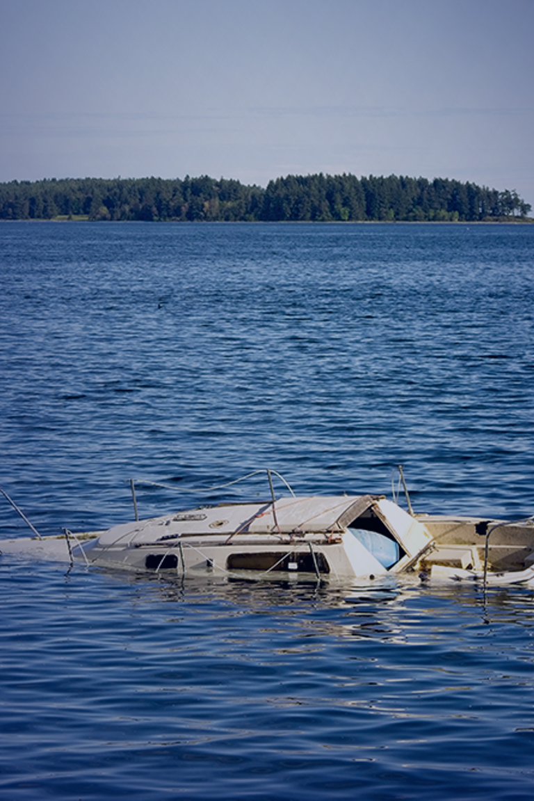 - Har båten vært utsatt for synking der motor og annet teknisk utstyr har vært under vann, sikre båten og vent med heving til du har avtalt med verksted som kan starte konserveringsarbeider.